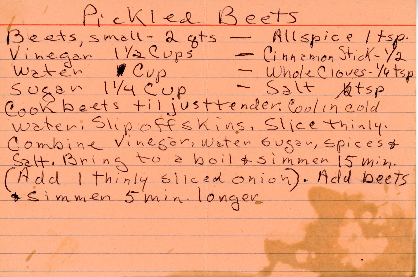 Here is my grandma’s recipe card, still stained with juice from her pickled beets ♥:
